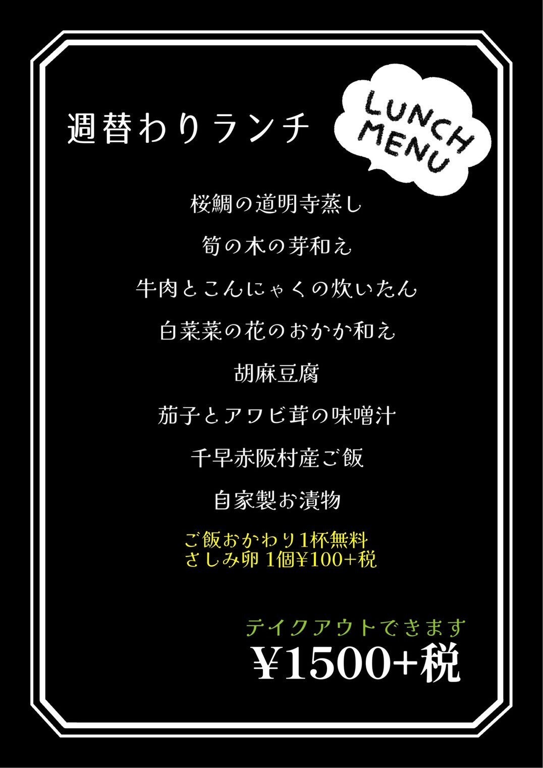お弁当やお惣菜のテイクアウトも。