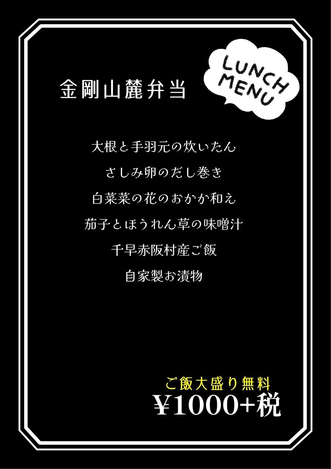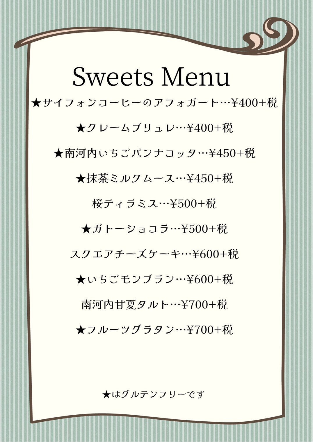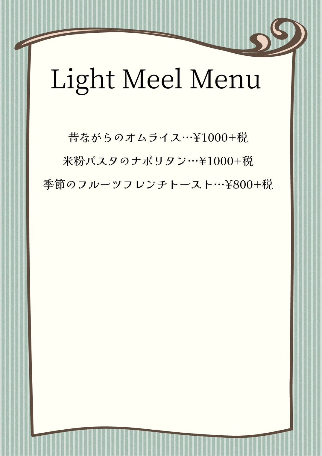 メニューは以下のとおり。