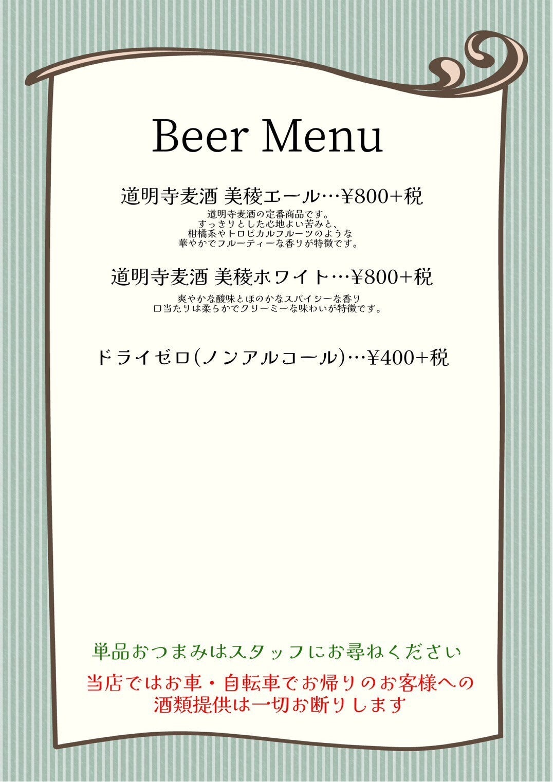 また、お車でお越しのお客様にはノンアルコールビールも