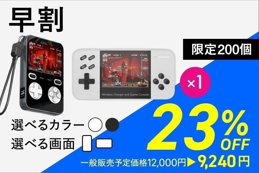 一般販売予定価格 24,000円 → 17,760円(税・送料込) 【内容】 ︎モバイルBOYシリーズ ×2 ︎USB Type-C ケーブル ×2 ︎日本語マニュアル ×2 【本体とカラー】 以下より2つご選択ください。 ・モバイルBOY1(ブラック/シルバー) ・モバイルBOY2(ブラック/ホワイト) ※デザイン・仕様は変更になる可能性もございます。ご了承ください。 ※皆様のご支援により量産効率が向上した場合、正規販売価格が販売予定価格より下がる可能性もございます。 ※ご注文状況、使用部材の供給状況、製造工程上の都合等により出荷時期が遅れる場合があります。