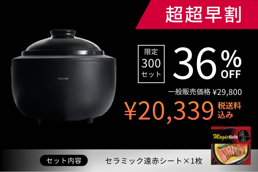 ③:【超超早割36%OFF】カマノ土鍋炊飯器 単品+セラミック遠赤シート×1枚