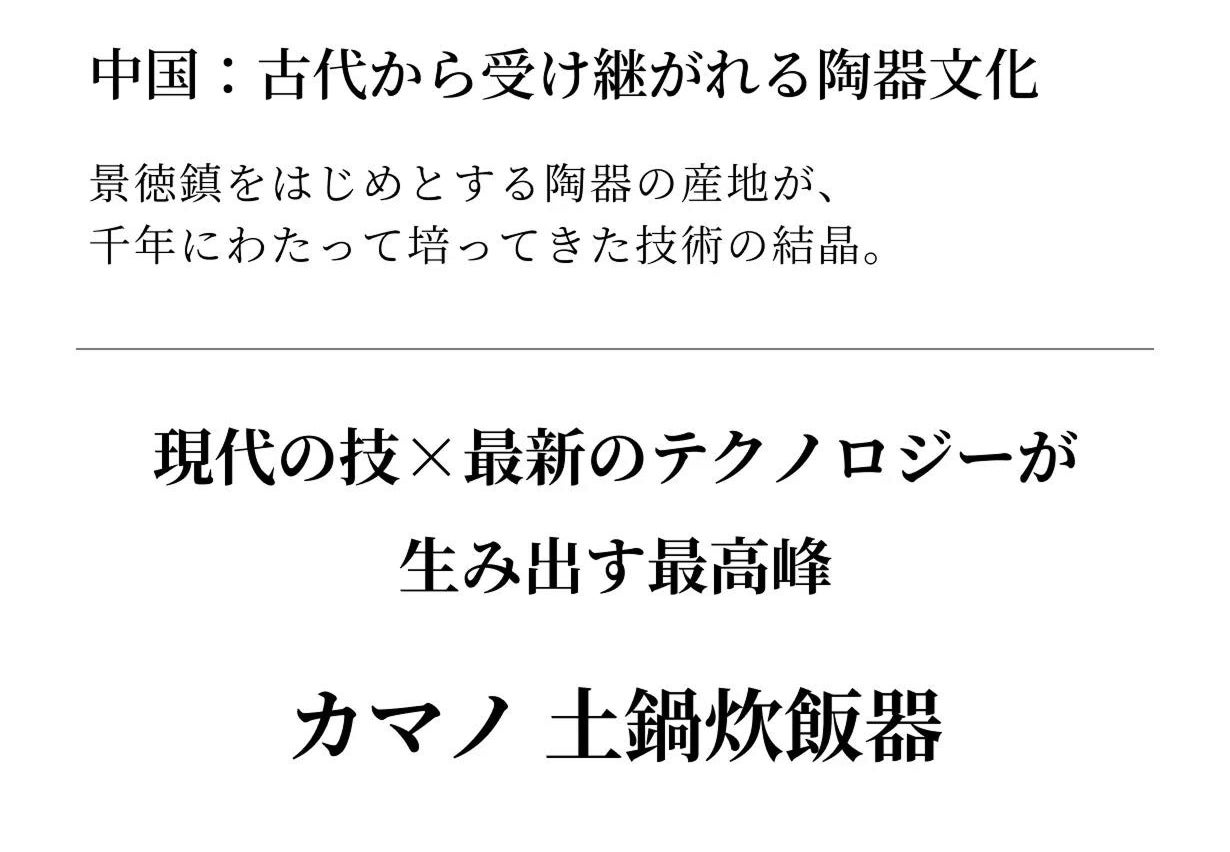 わたしたちは、カマノ 土鍋炊飯器を皆様にお届けする為に、現在工場とデザイン・仕様を実現できるよう、プロジェクトを誠心誠意進めています。 しかしながら、開発中の工程において、デザイン・仕様が一部変更になる可能性もあります。 デザイン・仕様の変更はより良い商品を皆様のお手元に届けたいからであることご理解頂けると幸いです。