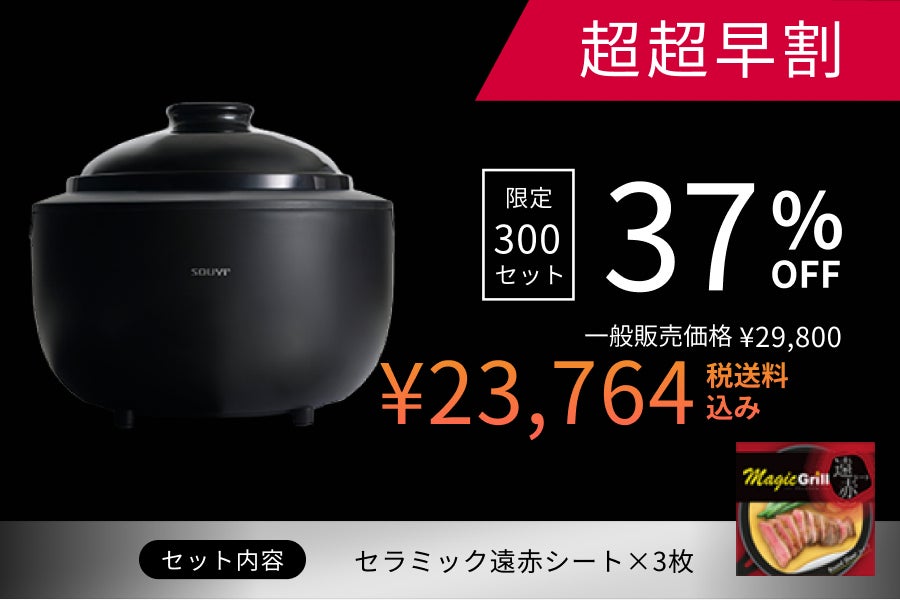 ③:【超超早割36%OFF】カマノ土鍋炊飯器 単品+セラミック遠赤シート×1枚
