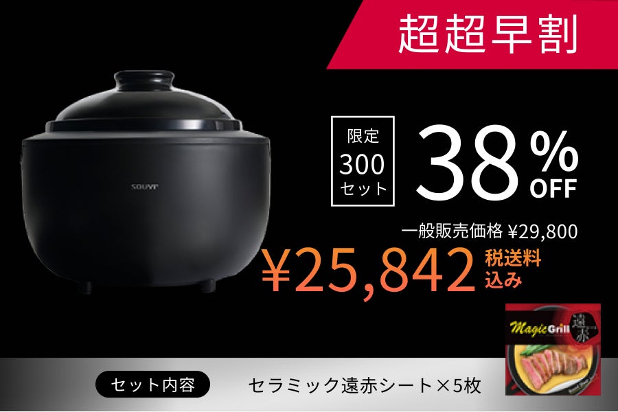 ⑤:【超超早割38%OFF】カマノ土鍋炊飯器 単品+セラミック遠赤シート×5枚