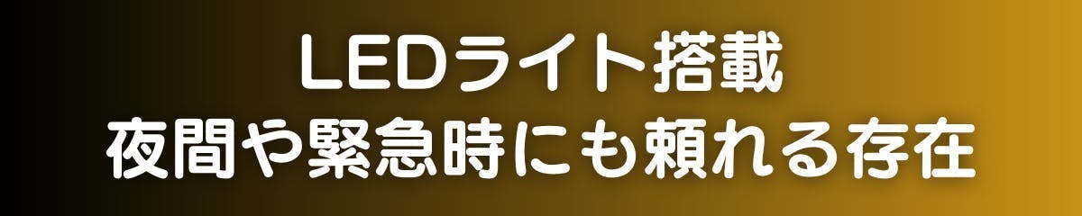 夜間のアウトドアや停電時、ちょっとした手元の明かりが欲しいときに役立つ LEDライトを搭載しています。