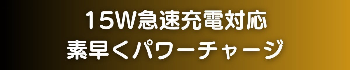 A4. 15W急速充電に対応しており、一般的な5W充電と比べて約3倍のスピードで充電できます。(デバイスの対応状況によります)