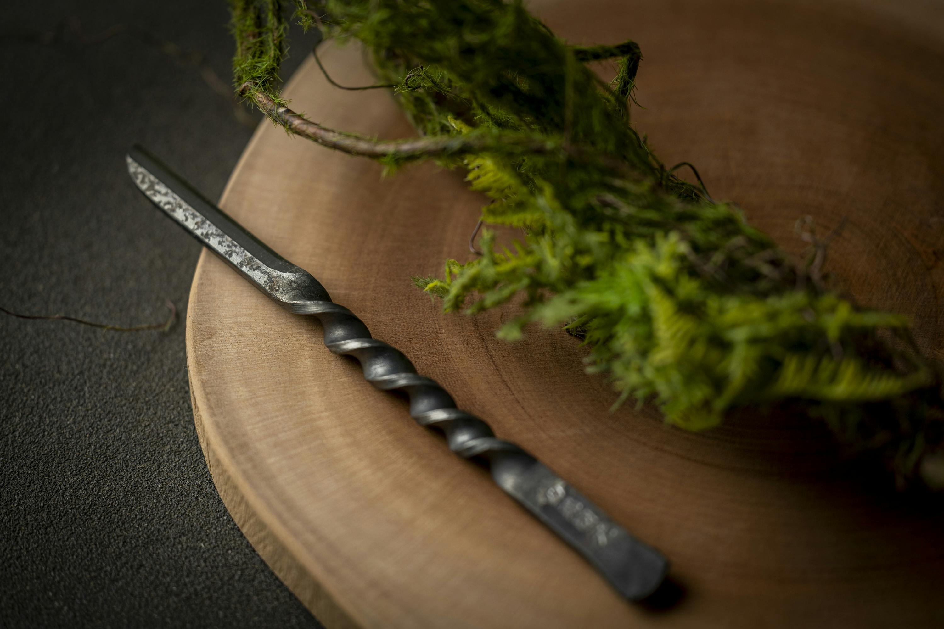 ナイフを手で持つ部分が特徴的で、ねじれ加工を施しており美観と握りやすさを両立させたハンドルとなっています。