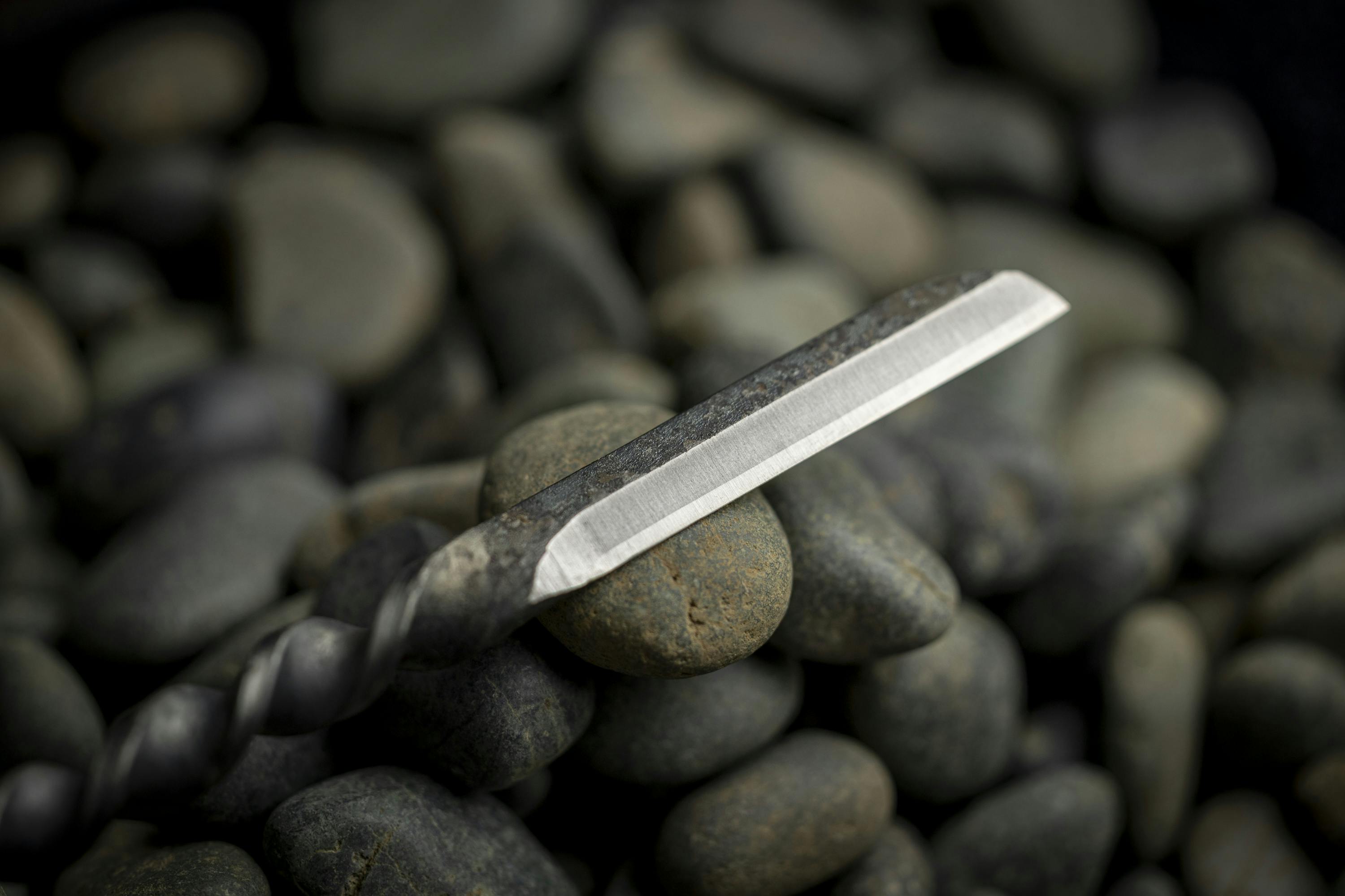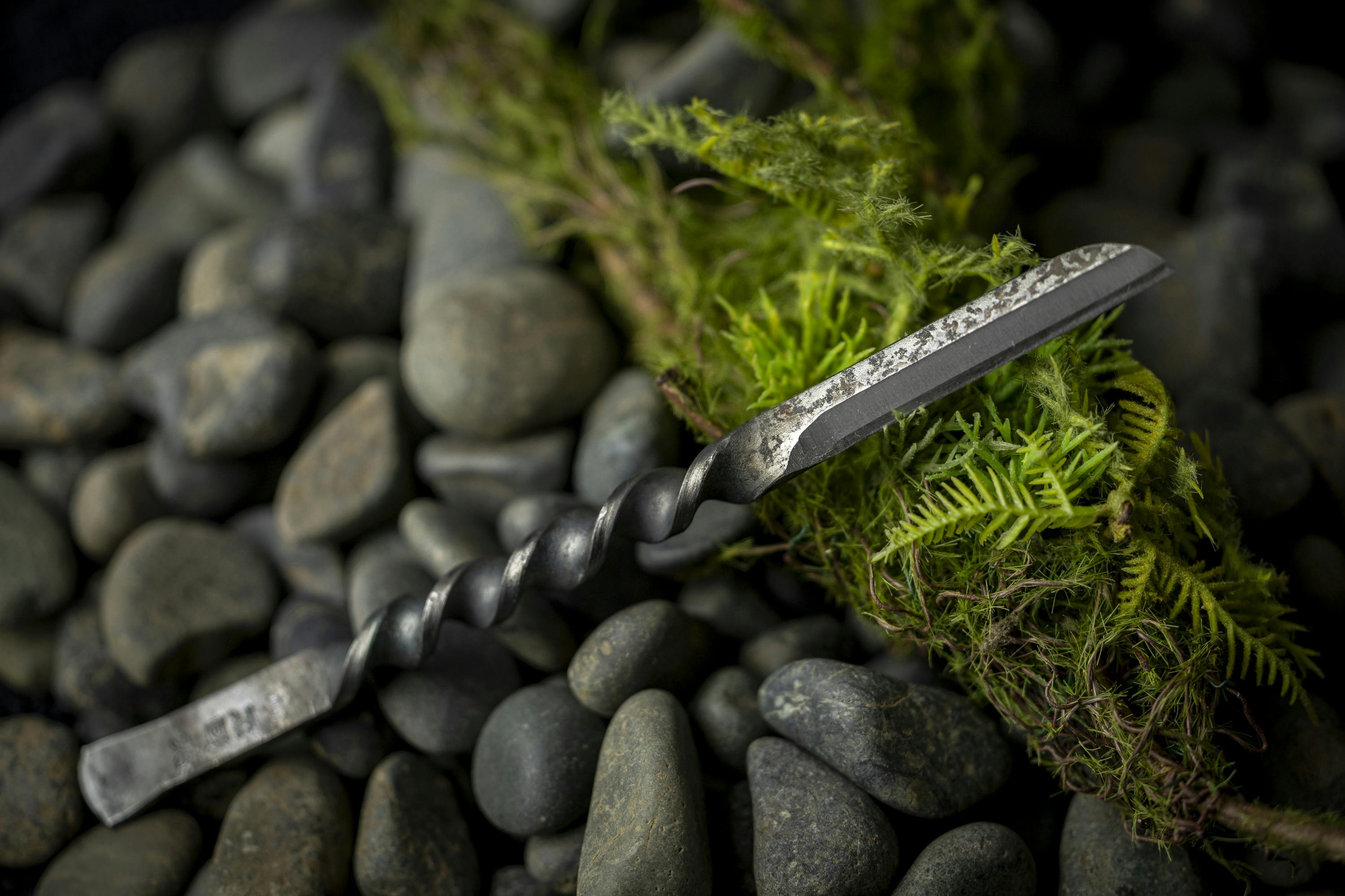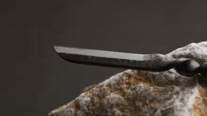 ナイフの固有の黒い表面は、焼き入れなど熱処理の工程において形成される酸化膜です。この膜に覆われた部分は錆びにくくなるというメリットがあります。そして表面が同じナイフは存在せず、それぞれ違った仕上がりのものとなるのです。