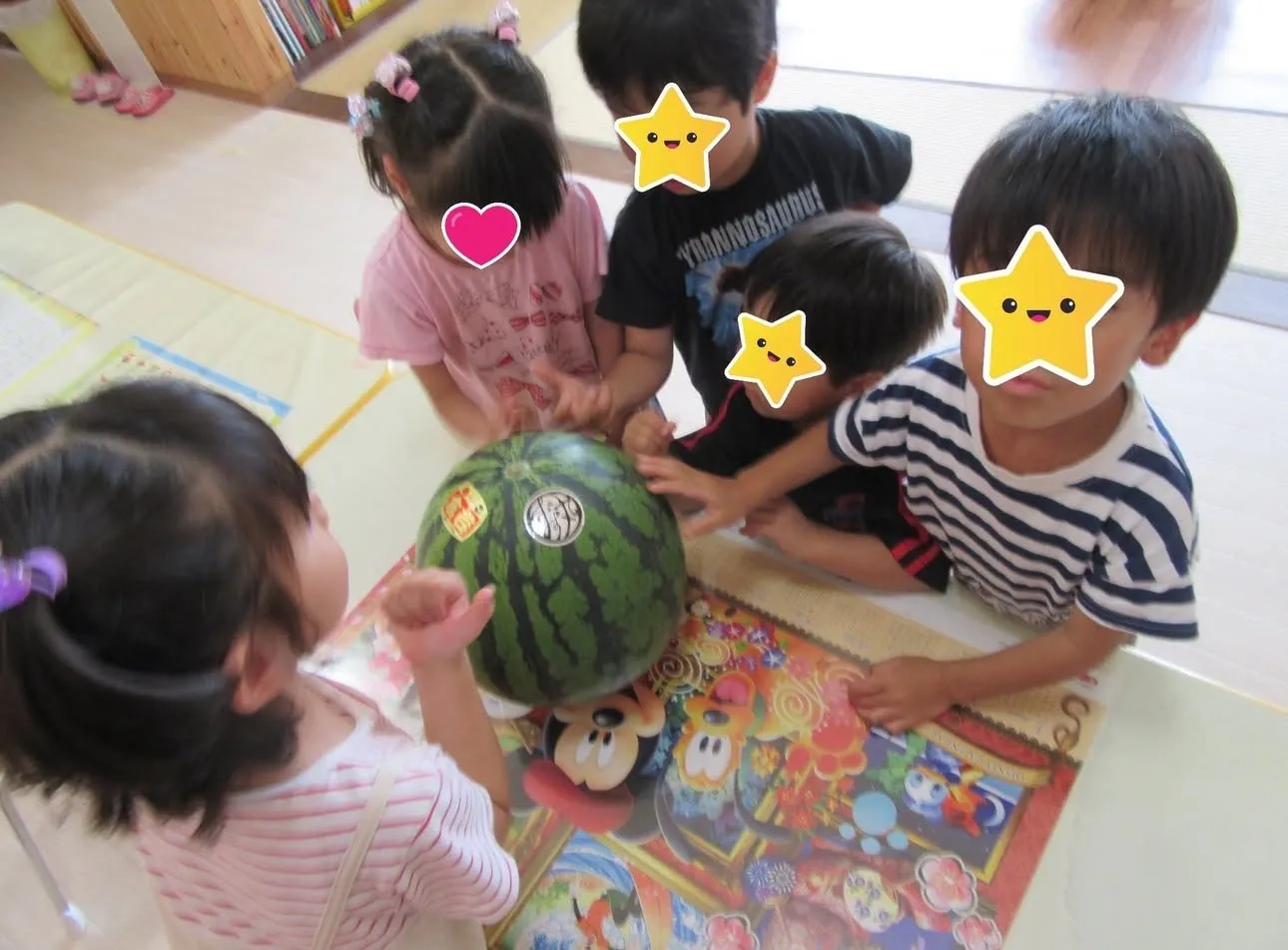子ども達は1玉まるまるのスイカを見て触る機会も、
