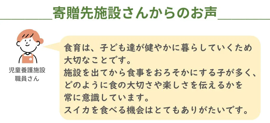 ※この度寄贈するスイカ、及びリターン品のスイカ・野菜は全てこちらの農園から直送いたします。