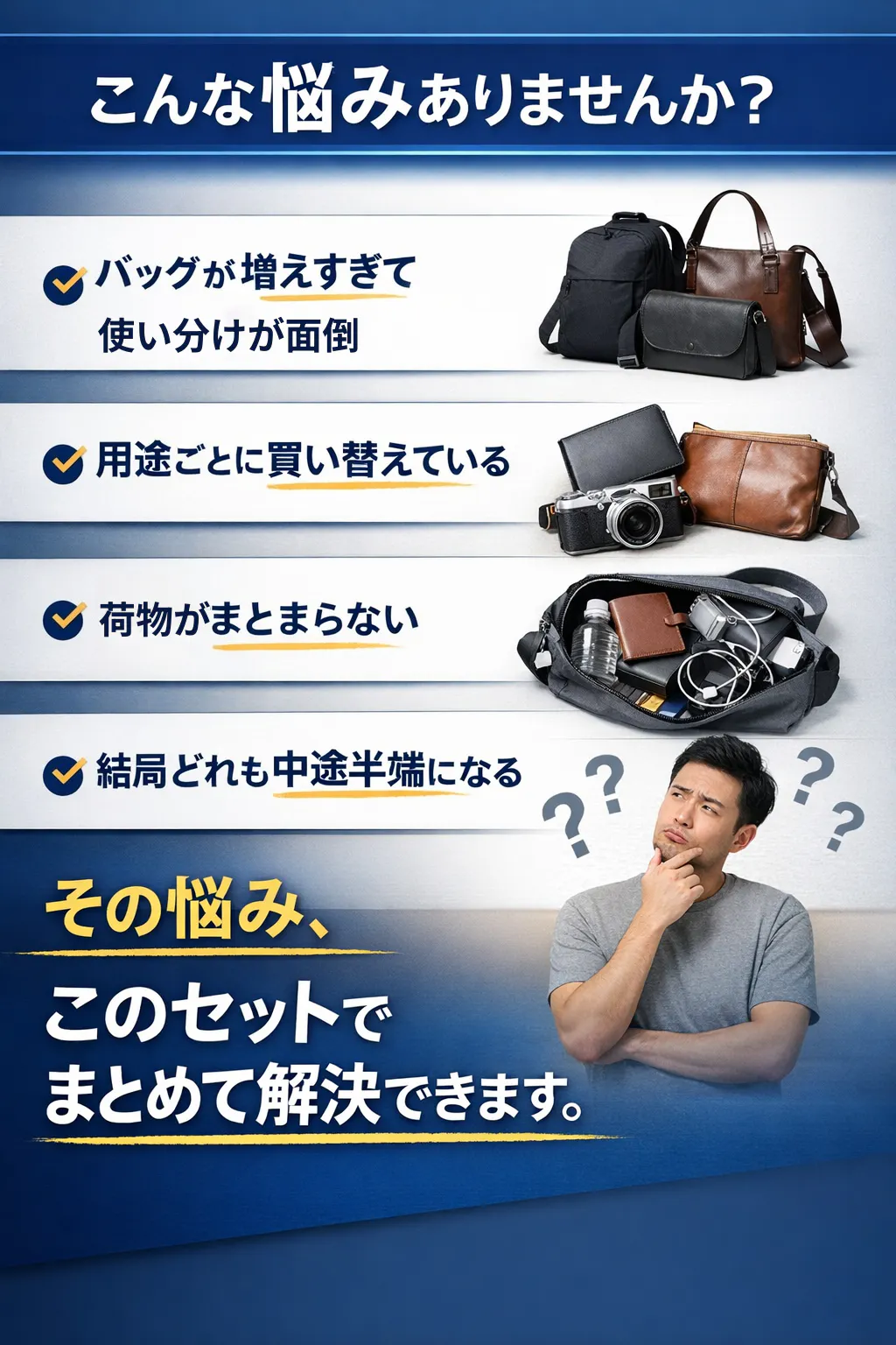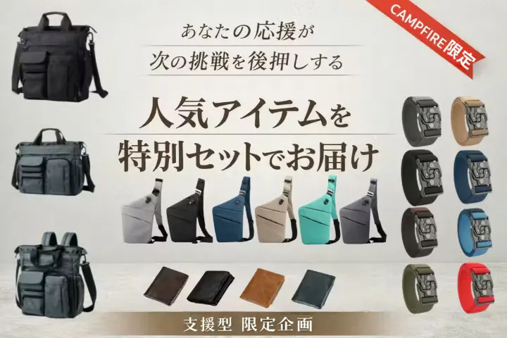 バッグ,財布,ベルト,セット商品,メンズファッション,通勤バッグ,ミニマル,整理収納,多機能バッグ,日常使い,旅行バッグ,クラウドファンディング,新商品,先行販売,限定