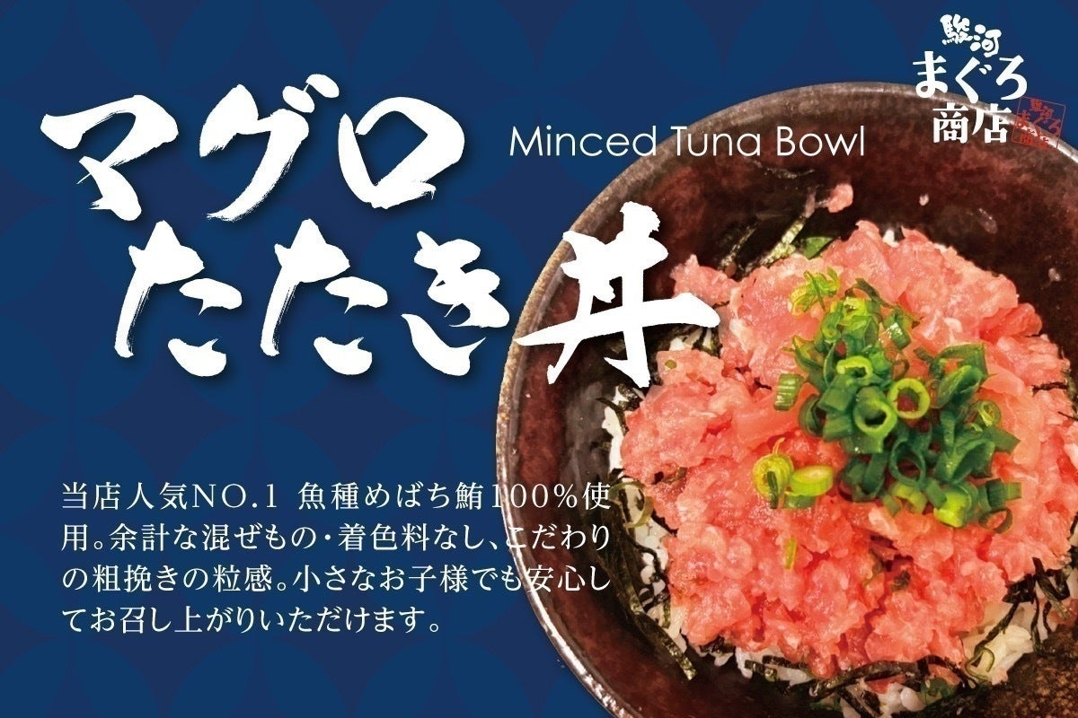 駿河まぐろ商店の看板商品は、焼津の水産会社様のご協力のもとした完全オリジナルの「マグロたたき」です。