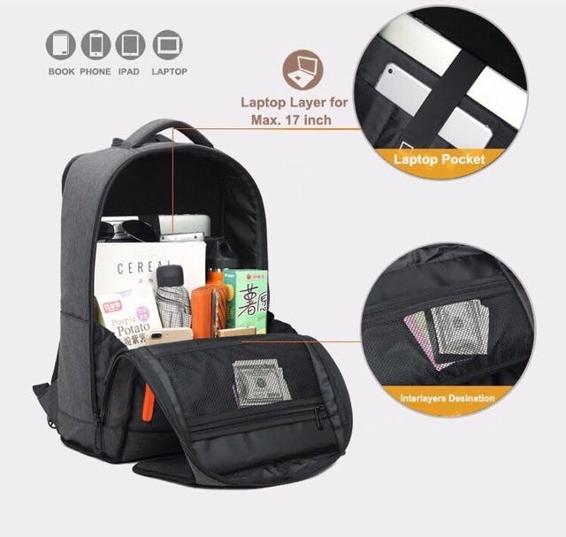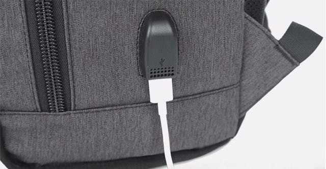 リュック内側にUSBケーブルがあり、モバイルバッテリーと接続することで、バッテリーをバッグから出さずにスマートに充電ができます。