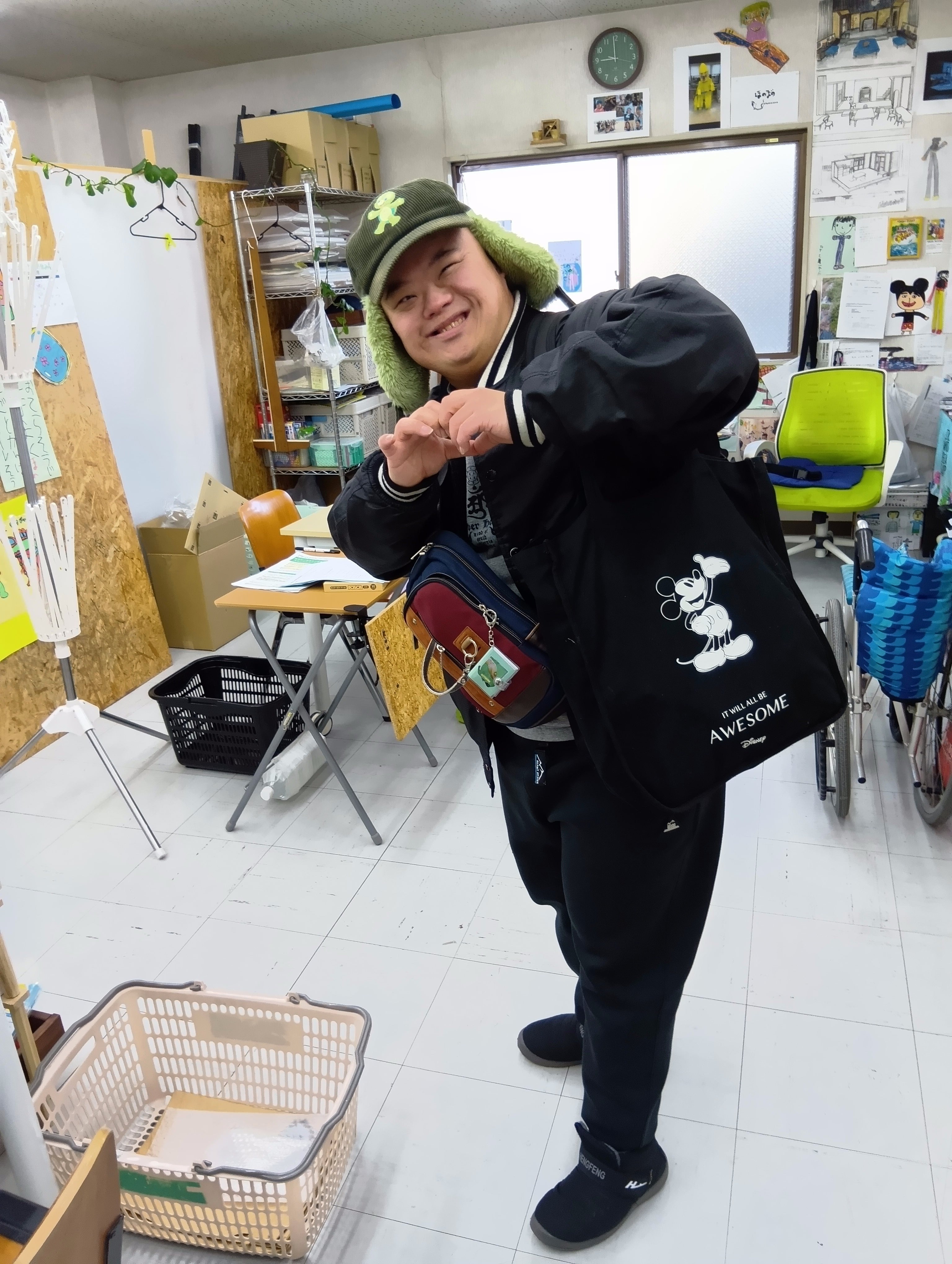 毎朝「どこに旅行に行くの?」というほどの荷物を両肩にかけて、バスに乗って1時間かけて来所します。