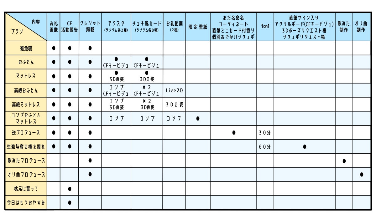 リターンはCF活動報告のみ、今日はもうおやすみプランと同一の内容です