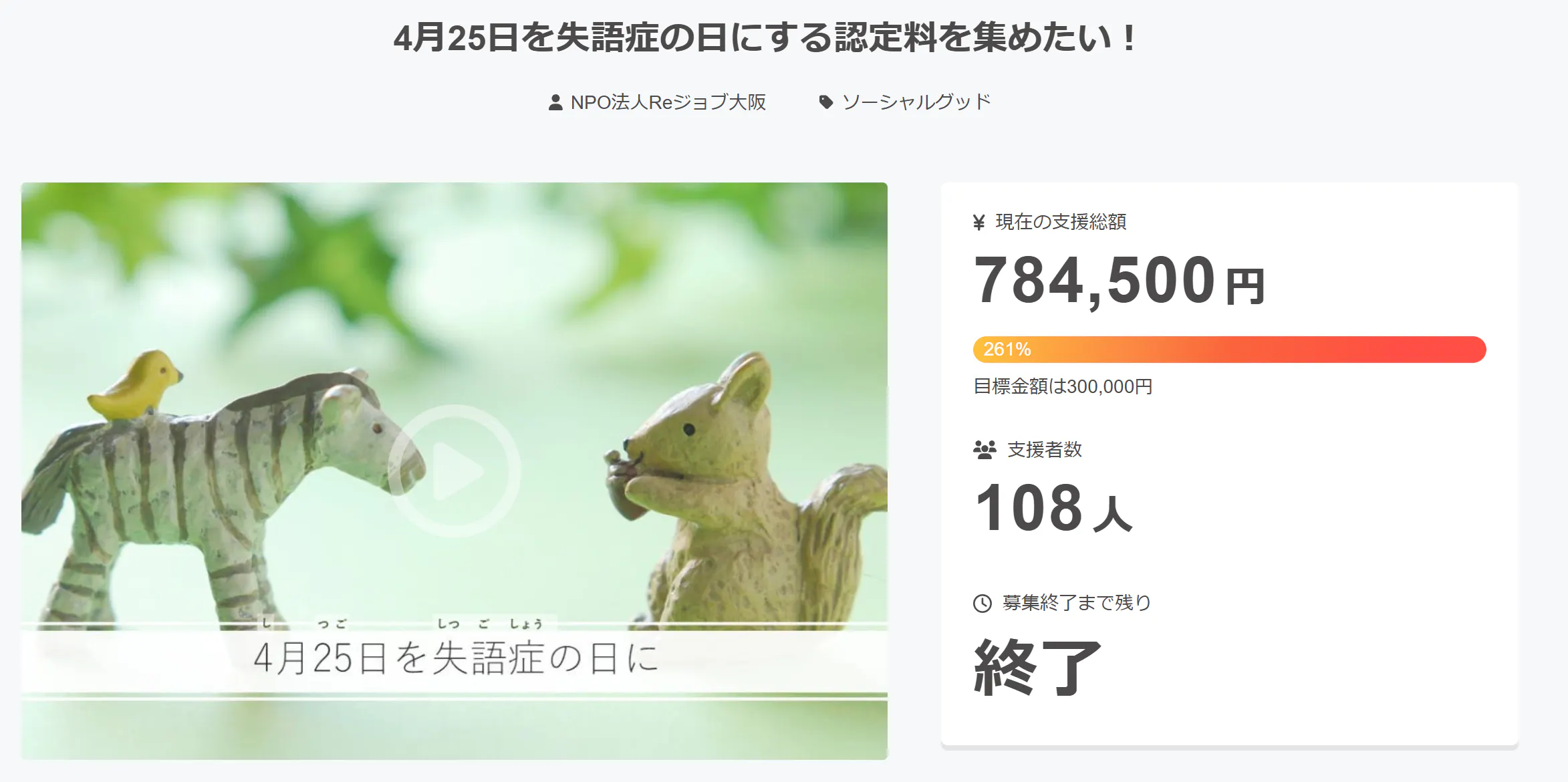 こうした現実を見て、私達はまず 「失語症という障害を知ってもらうこと」 が必要だと思い、2020年にはクラウドファンディングで資金を募り、4月25日を 「失語症の日」 として広げる活動をスタートしました。