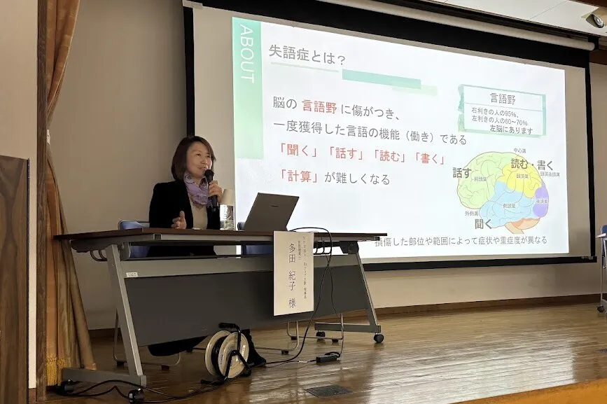 この活動の原点は、急性期病院で出会った一人の患者さんでした。40代で脳の病気を経験したその方は、退院後の生活を 6年間日記に書き続けていました。そこには退院後の生活の苦労、社会の理解不足、孤独が書かれていました。私はその日記を読んだとき、退院後の生活をほとんど知らないまま支援していたことに気づきました。さらに衝撃だったのは、一度回復した言語機能が、「話さない」生活によって悪化すること(廃用といいます)でした。医療の枠組みだけでは、生活を支えきれない。そう思い、地域での活動を始めました。
