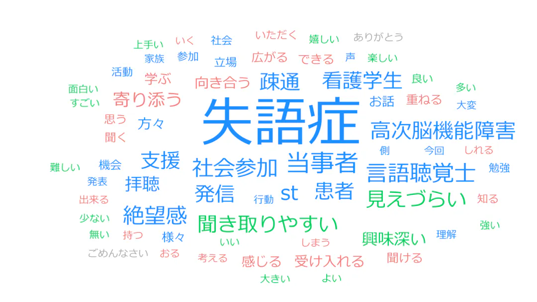・様々な年代の当事者の方のお話が聞けること、言語聴覚士や意思疎通支援の取り組みについて知ることができて、とても勉強になりました。