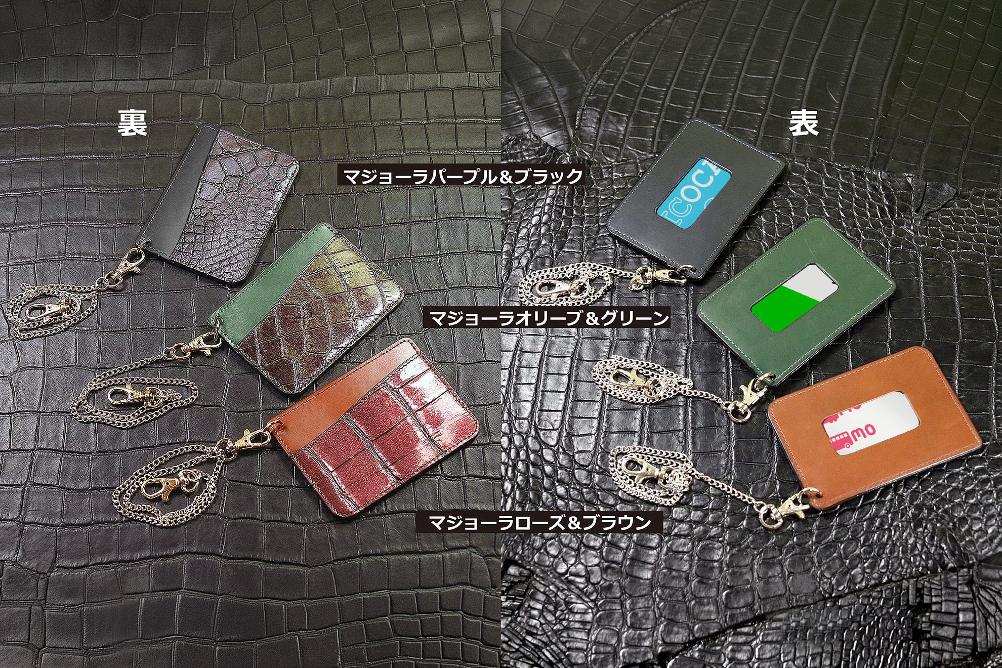 裏面には光で色が変わる“マジョーラ・クロコダイル”。