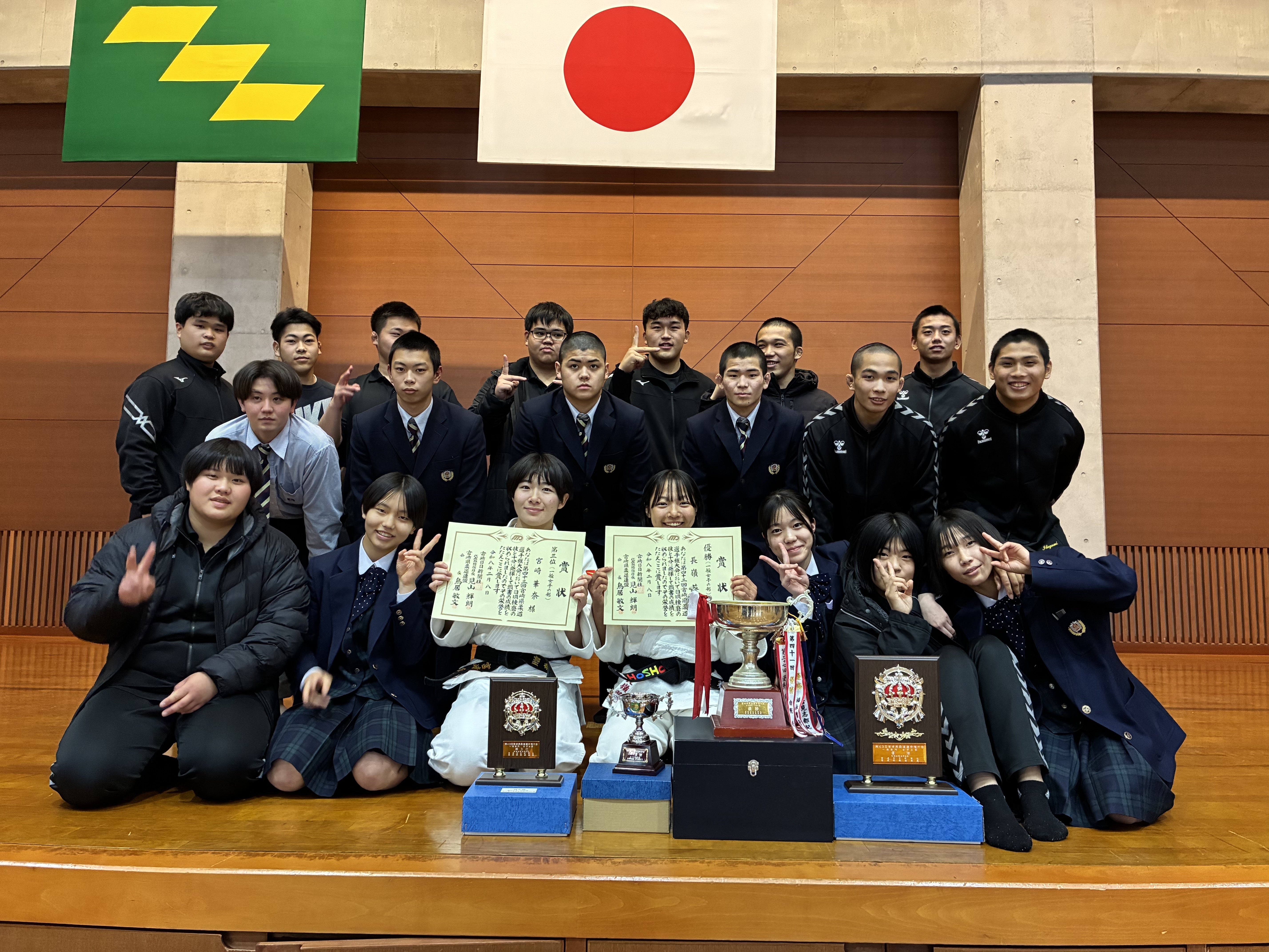 寮や下宿生活をしながら、柔道部に所属している生徒も多く、親元離れて頑張る姿に背中を推したくなるとともに、県内生徒の保護者様や地域の方々に支えられて、チーム一丸となって頑張っています。
