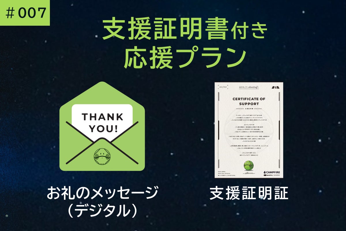 ・検証試験や打ち上げの成否に関わらず、それらに関連しないリターン(グッズ送付等)については、予定通り履行いたします。