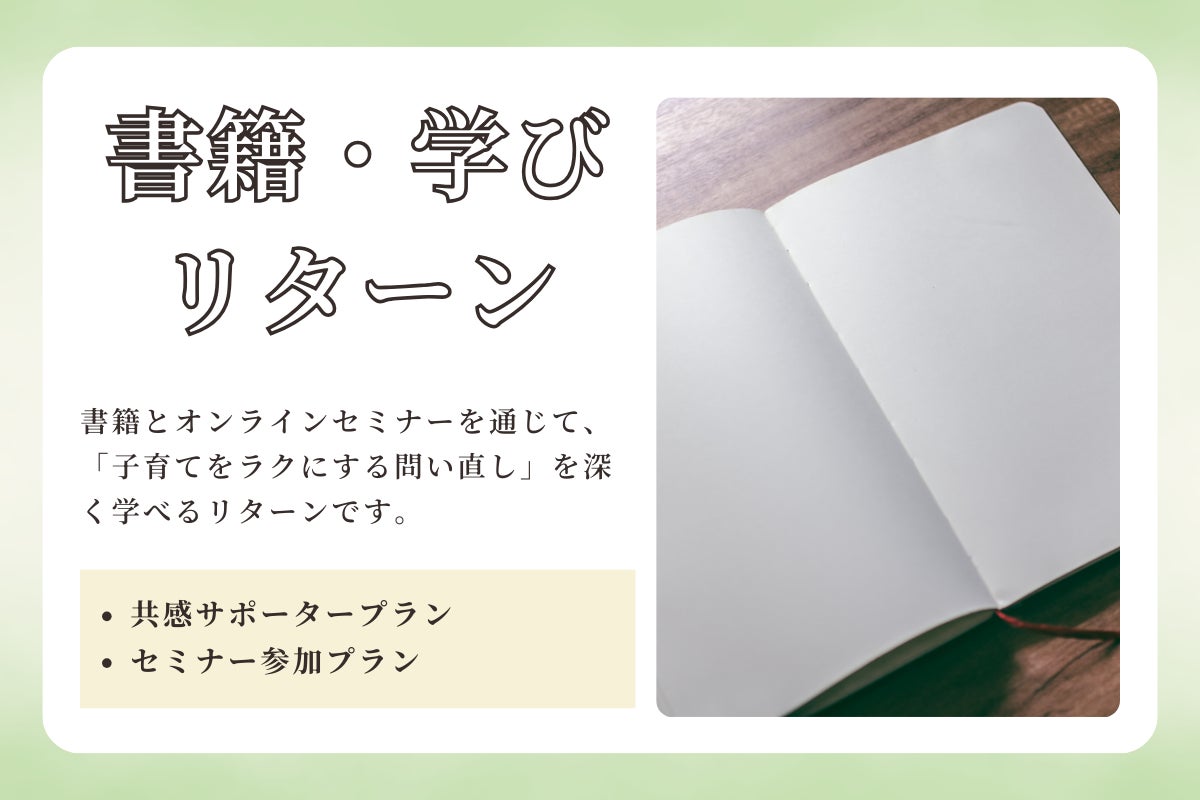 スケジュールは多少前後することもありますが、概ねこの日程感で進めていきます。本プロジェクトでは、応援のお気持ちをお寄せいただくプランから、セミナー、法人様向けのプランまで、幅広いリターンをご用意しました!“応援”が形として残る設計にしています。子どものために頑張っているのに、なぜか心が苦しい。
