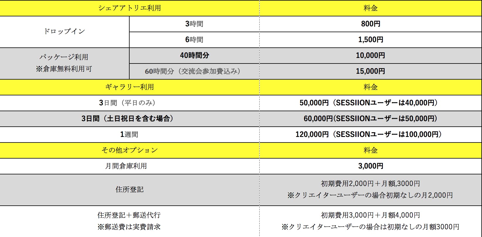 アトリエの利用料金ですが、