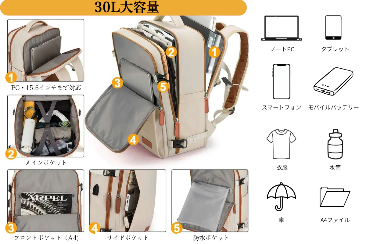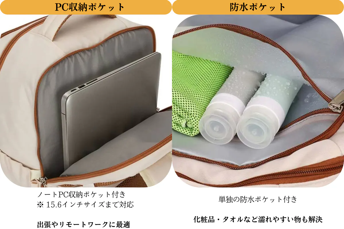 ・ワンバッグで完結:PC収納 + 衣類スペース + 小物ポケットを合理的に配置