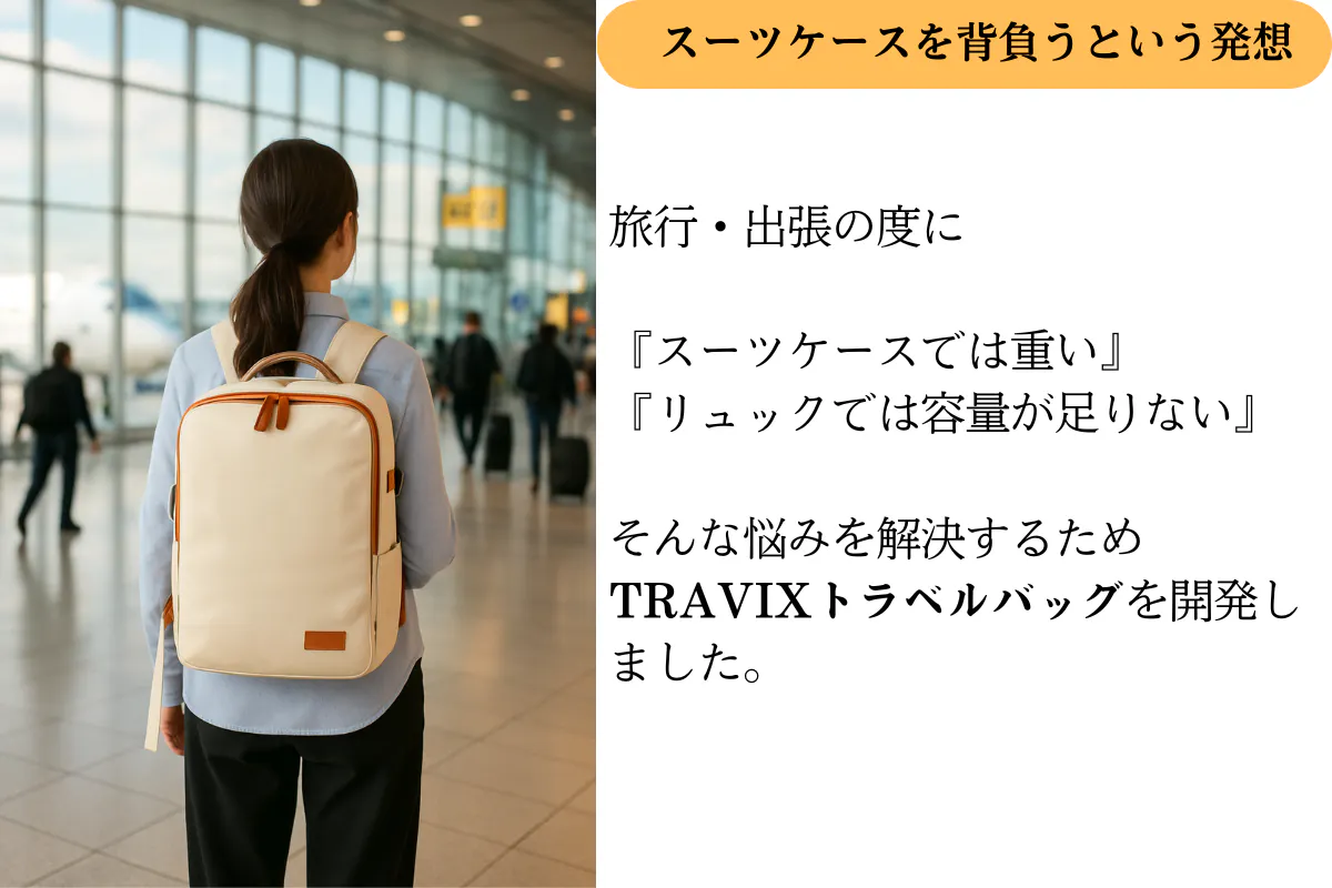 スーツケースの収納力とリュックの機動力を融合しました。