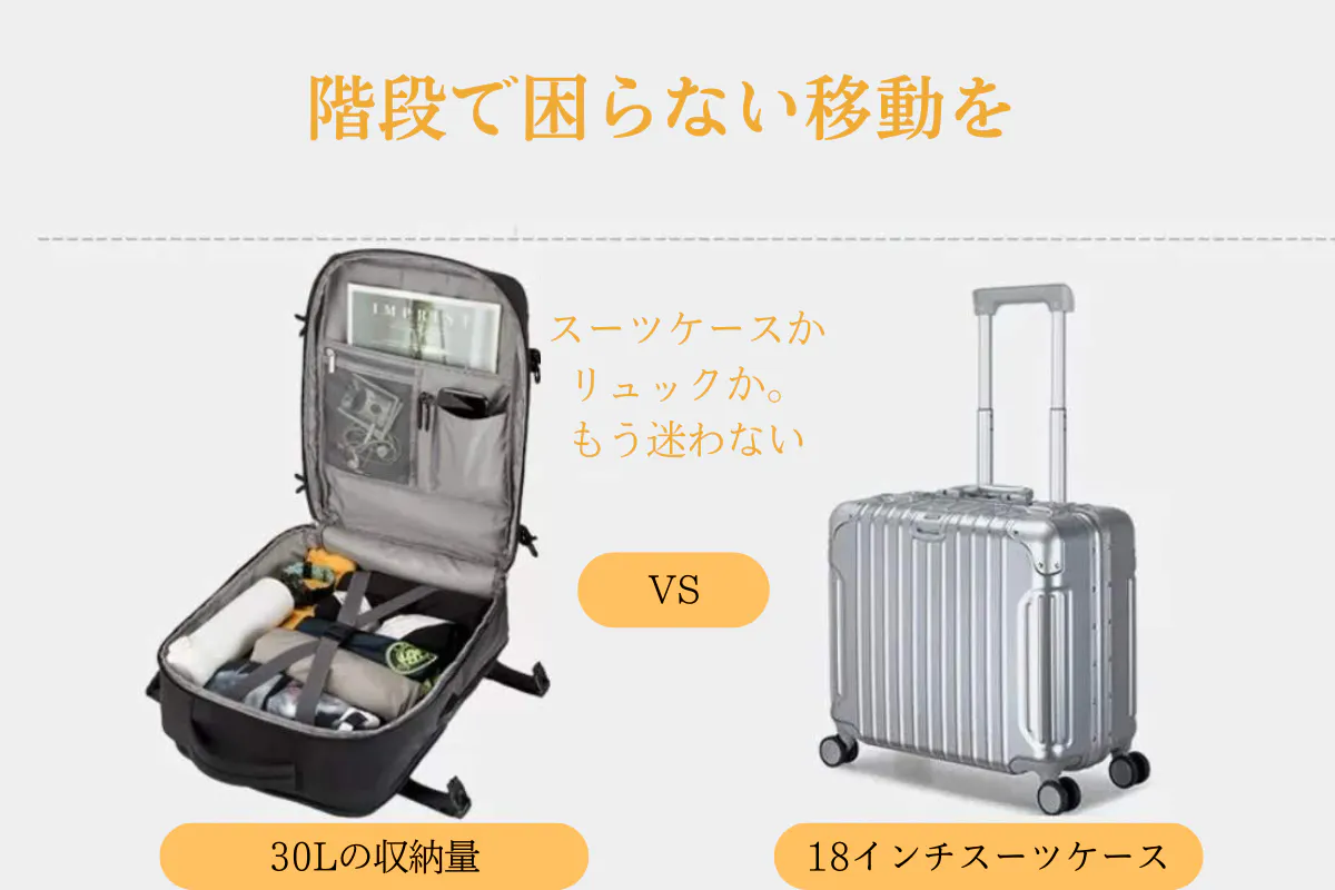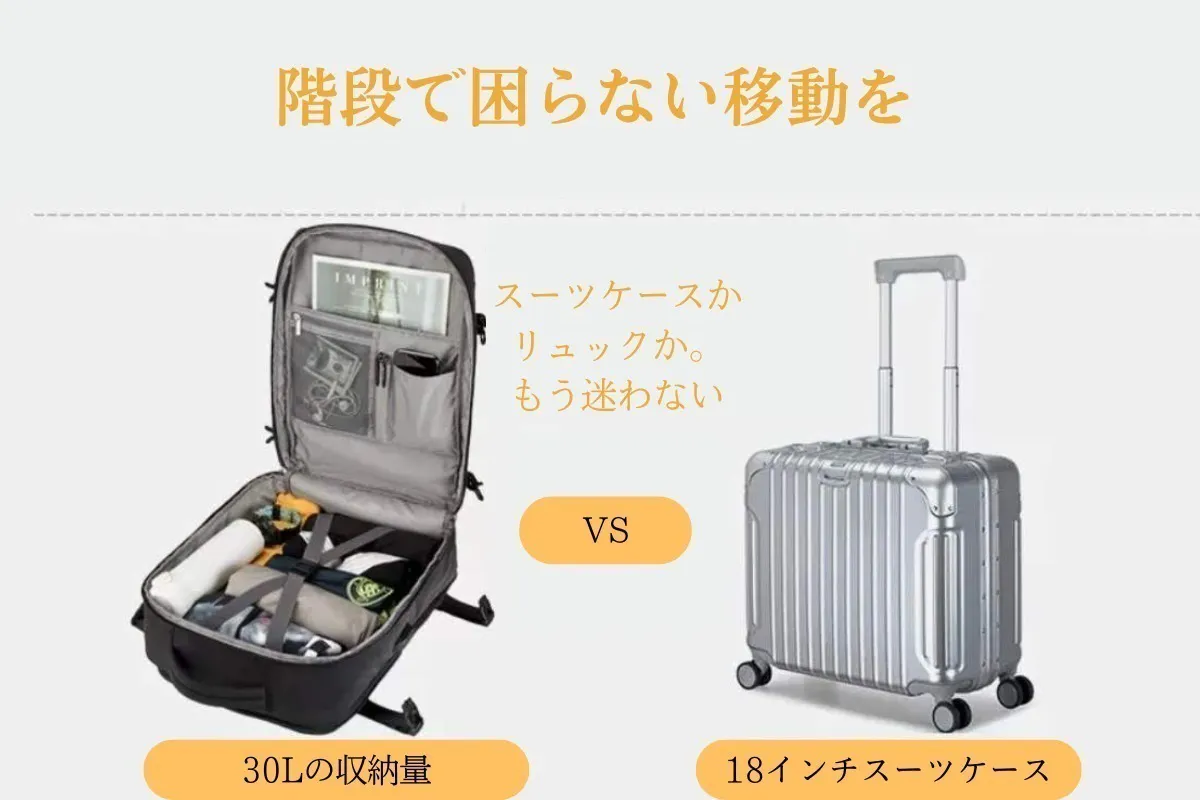 スーツケースは大きすぎ、バックパックだと収納力不足。