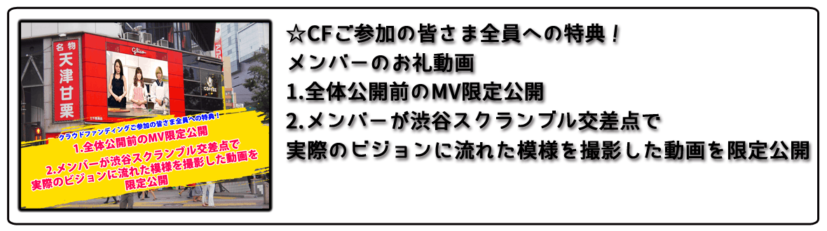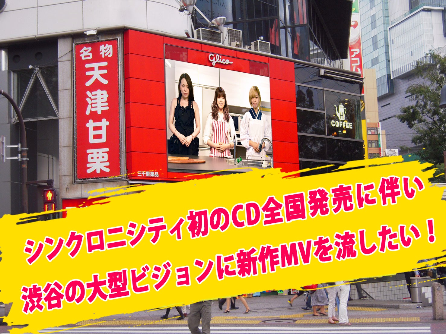 「シンクロニシティ初のCD全国販売に伴い渋谷の大型ビジョンに新作MVを流したい!」です!