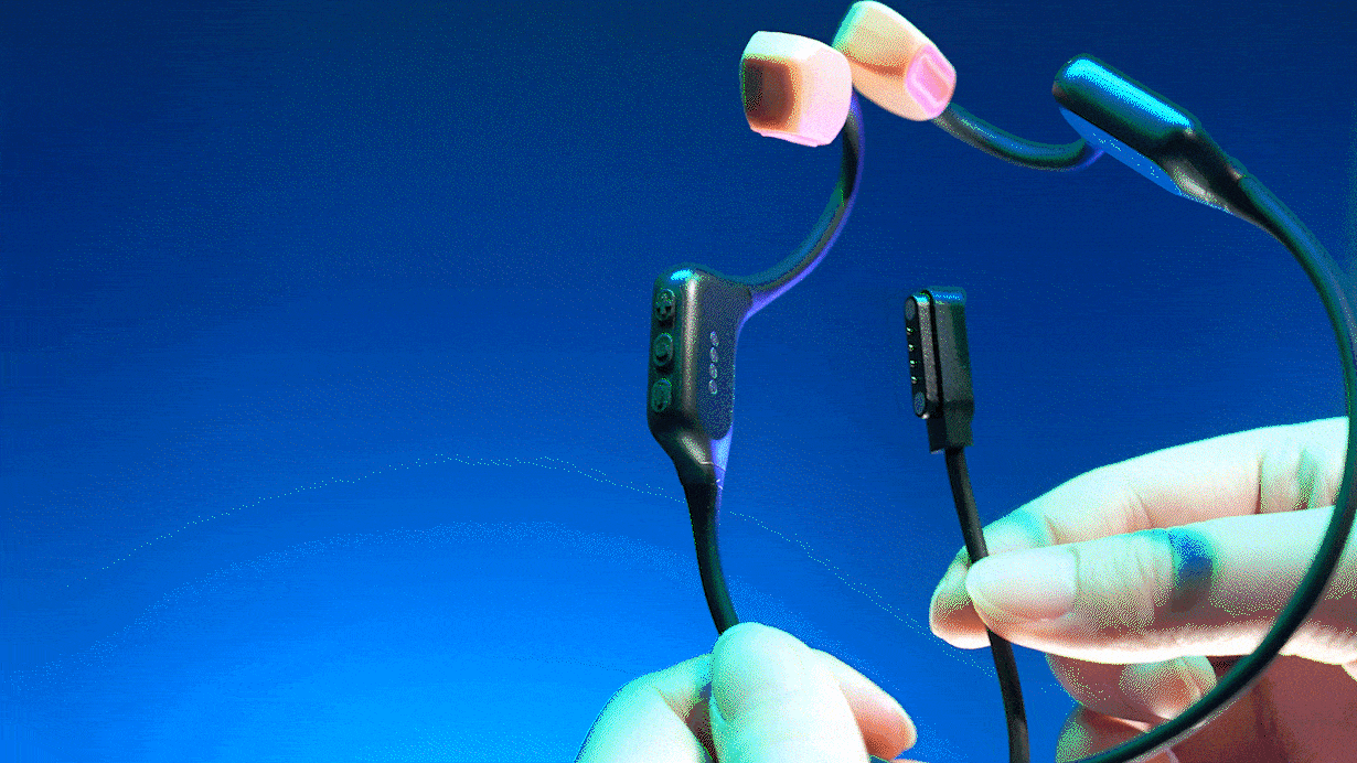 IPX8防水の骨伝導×空気伝導 デュアルドライバーイヤホン「OpenDual」(オープンデュアル)。