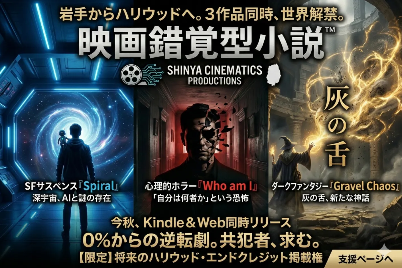 正直に言います。 このプロジェクトを立ち上げた今、支援の数字はまだ「ほぼゼロ」です。 「岩手の片田舎からハリウッドなんて無理だ」「3作同時なんて無謀だ」 そう笑う人もいるかもしれません。