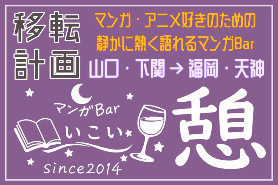 お店を山口県下関市から多くのサブカルなお店で賑わっている福岡・天神に移し『マンガBar憩』として、大人がゆっくり静かに、でも熱くマンガやアニメについて語れる場として生まれ変わらせたいです。