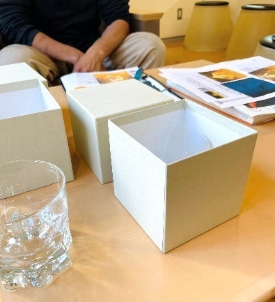 市川さんからは、光の乱反射を意識した個性的な形状に関する意見はもちろん、飲み口の薄さや、グラスに氷とウイスキーを注いだ時のことも考慮されたフィードバックが……。