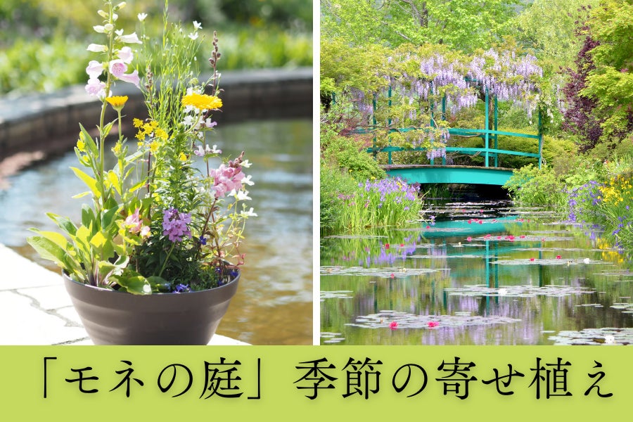 junosへお泊りの多くの方の目的地、車で5分の場所にある人気アートスポット北川村「モネの庭」マルモッタンより、季節の寄せ植えをご提供いただきました。モネの庭ガーデナーがその季節のお花を、キャンバスに絵具を載せるように豊かな色彩で制作してくださいます。