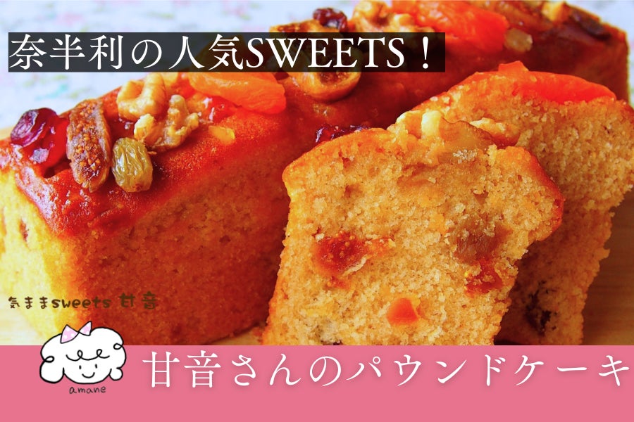 奈半利町と高知市でお店を展開されている洋菓子店、気ままsweets甘音さんの人気商品!パウンドケーキもご提供いただきました。一番人気のドライフルーツと、焦がしバターの2本セットもございます。甘音さんは、junosでのイベント等でケーキビュッフェをご提供いただいています。