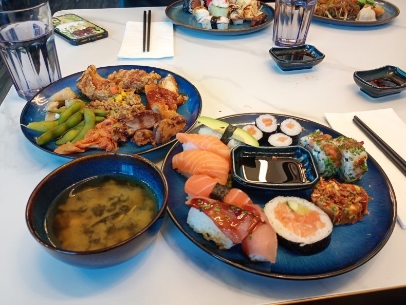 なんとフィンランドでは日本食が人気だそうでして、旅路のあとの腹ごしらえにと和食バイキングに連れてきていただきました!めちゃんこうまい!!!味噌汁〜ほっとする〜。