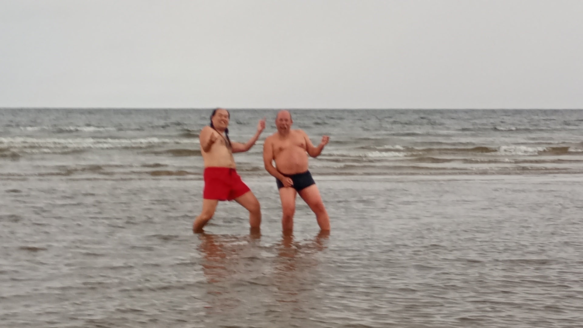 さ、先を越された!しかも海の中でエアギターだと?!(気温約10度)