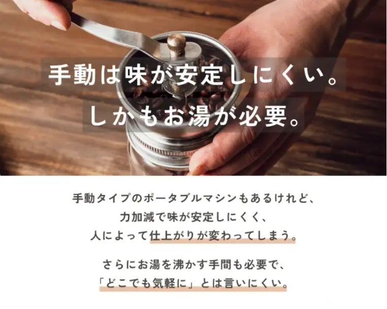 充電環境のない場所でもコーヒーの欲しい瞬間にすぐ対応。