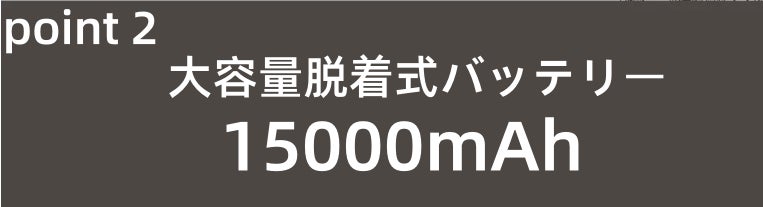 本体に7500mAh大容量バッテリーを搭載し、さらに同容量の交換用バッテリーを付属します。
