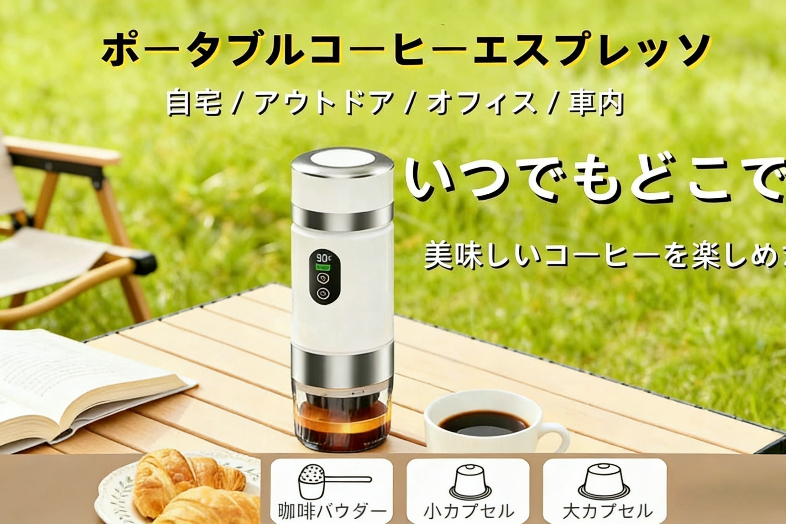 今回紹介させて頂く「ポータブルエスプレッソ」は、旅行、車内、散歩時、社内でも休憩時に、手軽に新鮮な香りとテイストの淹れたてコーヒーが楽しめます。ワンタッチ全自動淹れたて持ち運び可能です。手軽にコーヒーを楽しんで一息ついていただけると嬉しいです。
