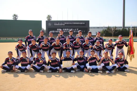 兵庫夙川ボーイズと申します。このたび、私たちのチームがスターゼンカップ 第56回日本少年野球春季全国大会 兵庫県東支部予選で優勝し、3月26日から東京で開催されるボーイズリーグ全国大会への出場が決定いたしました。7年ぶり2度目の選手たちにとって夢の大舞台です。
