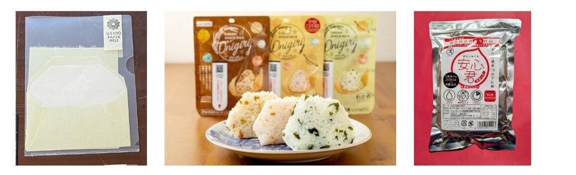 ①被災地応援品 宮城県角田市、加美町、川崎町で作られた地場産品 「夢☆宇宙米おにぎり」「手すき和紙製品」「安心君」ほか、開催地多賀市で生産されるリターンも準備中
