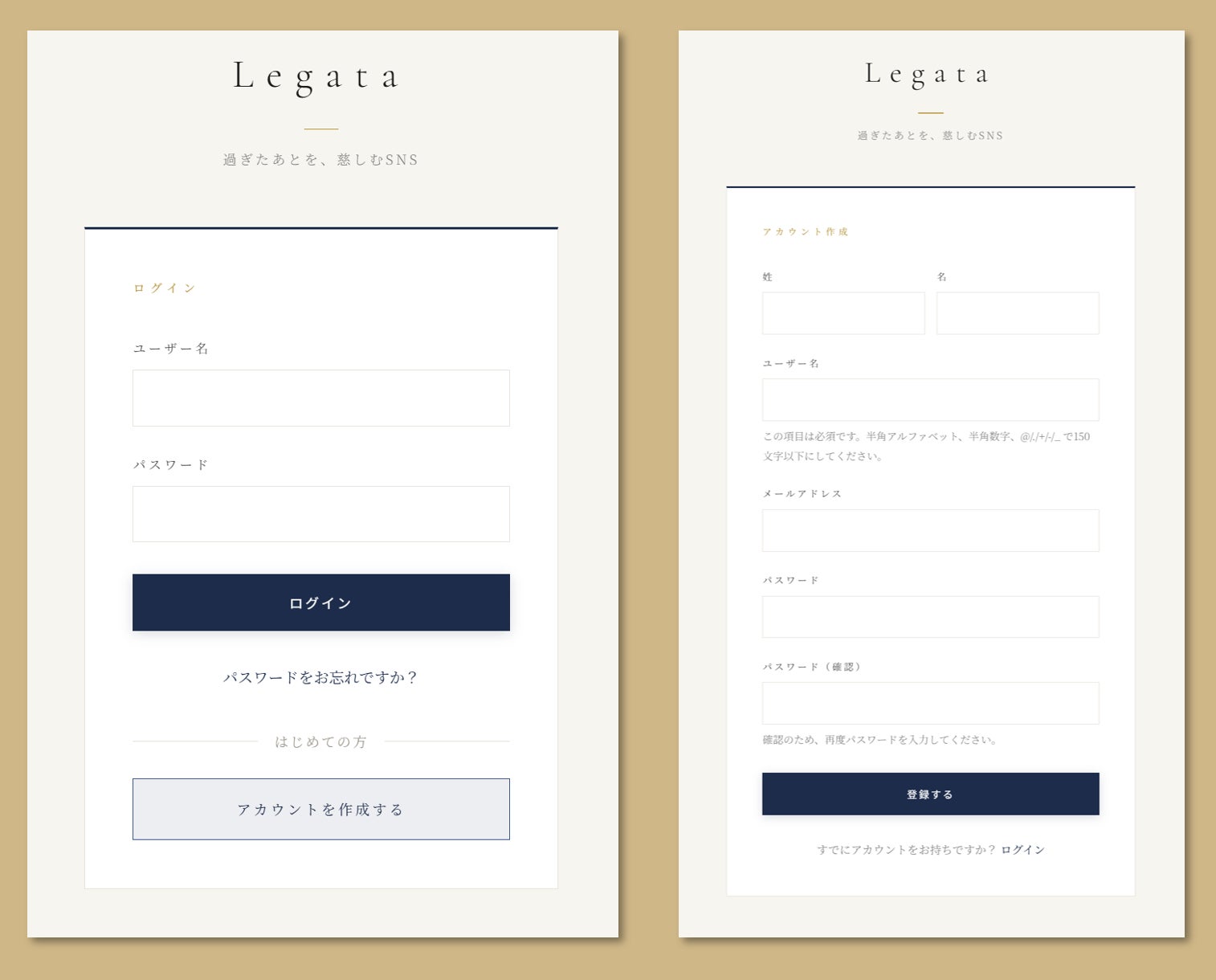 ログイン・新規登録画面