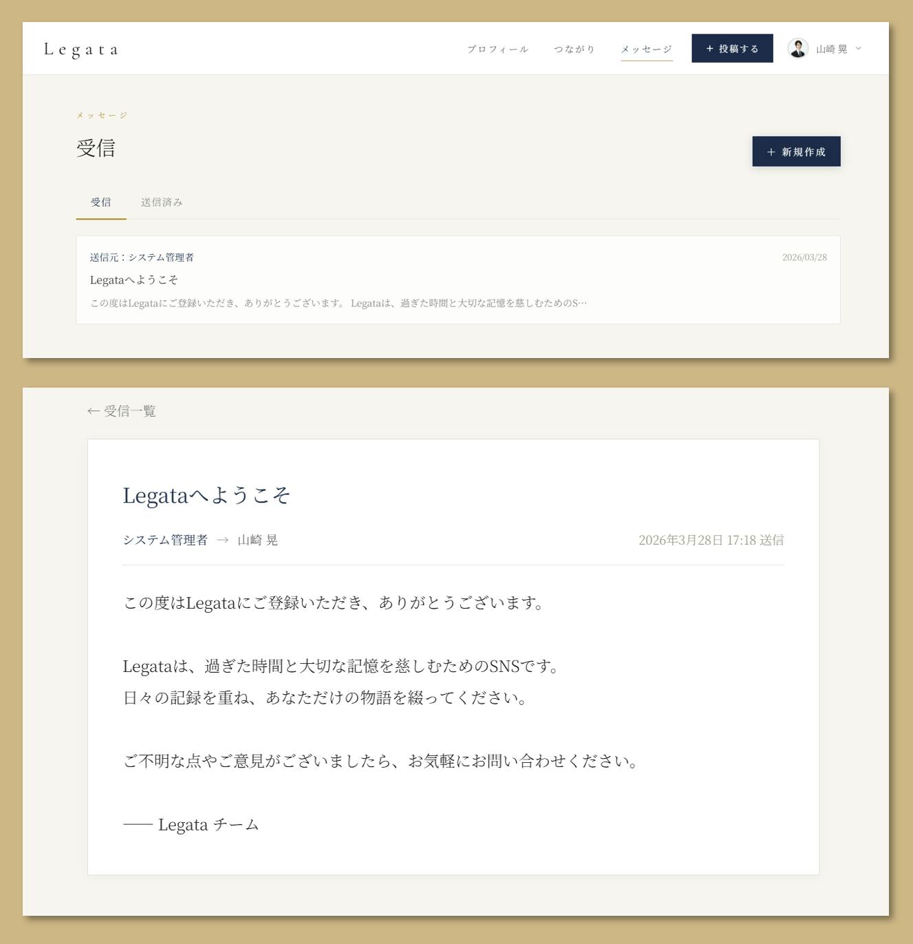 Legataは、単なるSNSや日記サービスではありません。自分の人生を未来の誰かへ届けることを意識するとき、人は今をより深く生きようとする。そして残された人は、その想いを受け取ることで、悲しみの中にも温かさを見つけられる。死を、生の完結として見つめられる場所を作りたい。それがLegataに込めた願いです。