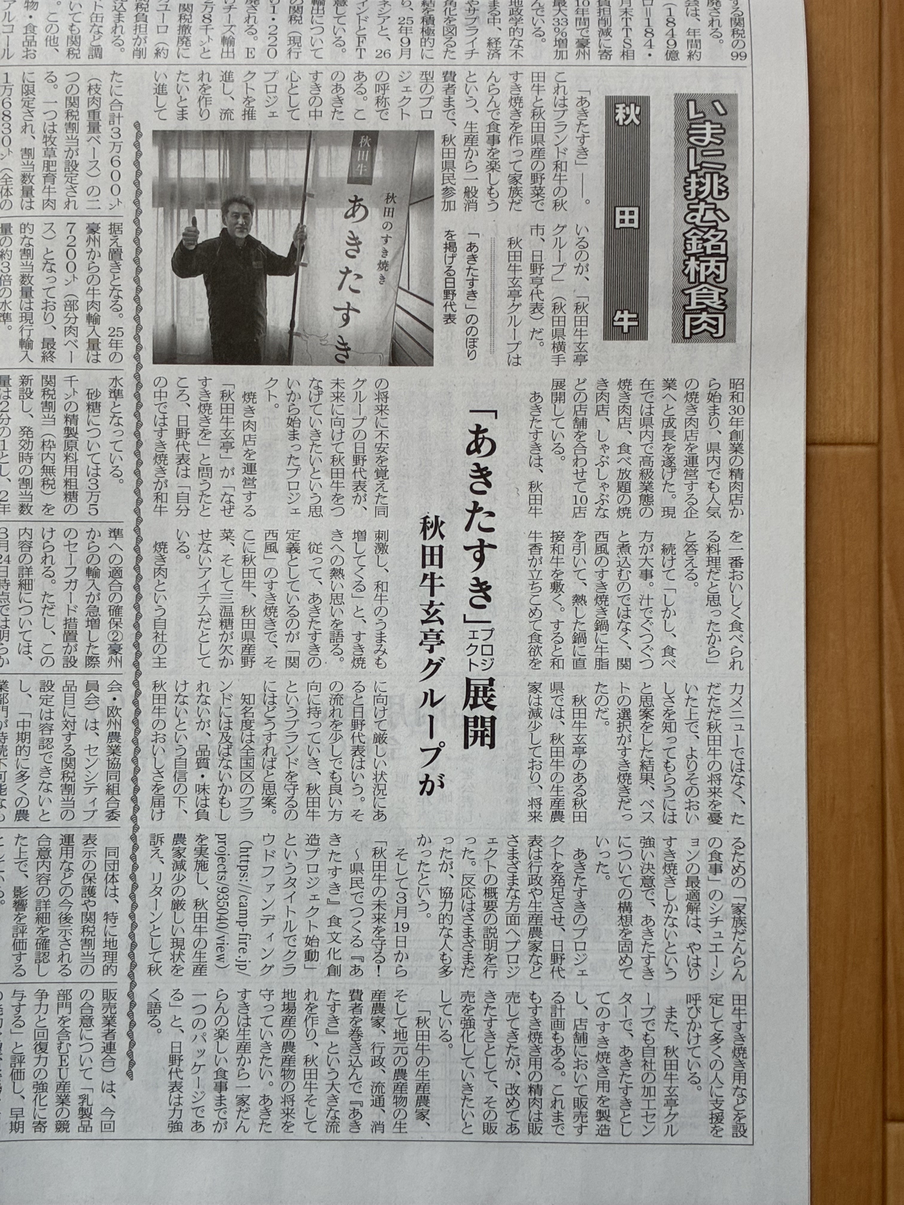 そしてこのたび、業界専門紙「食肉通信」にて、私たちの取り組み「あきたすき」プロジェクトを取材・掲載していただきました。「食肉通信」は、食肉にかかわる方は誰もが知る、古くからある新聞です。食肉業界の現場の声やリアルな課題、未来への取り組みを丁寧に発信され、多くの関係者の方々に読まれています。