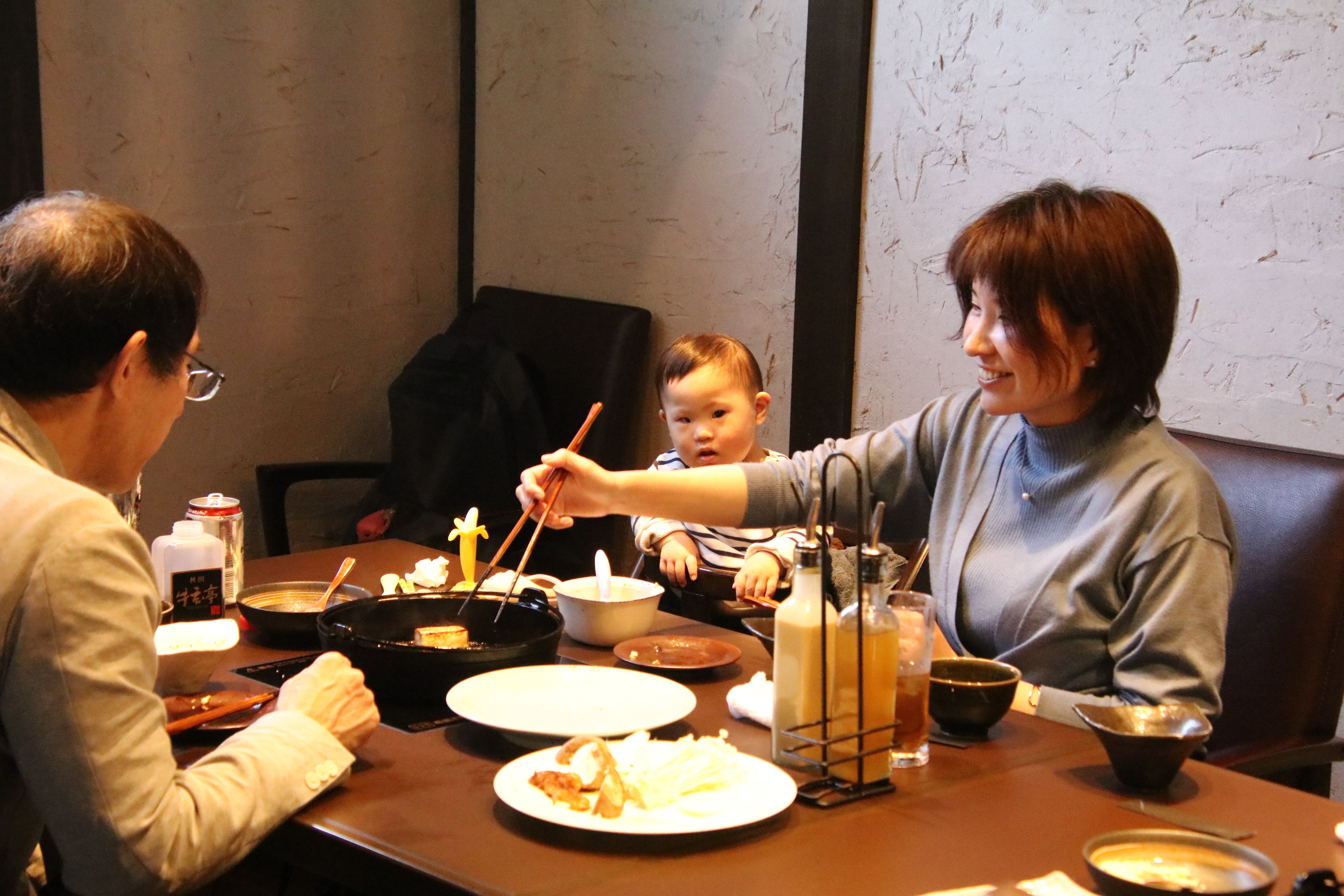 焼くタイプのすき焼きは初めてとのことで少し心配しましたが、食べ始めたところそのおいしさに皆さま驚かれ、おいしい笑顔の花がいっぱい咲いていました。