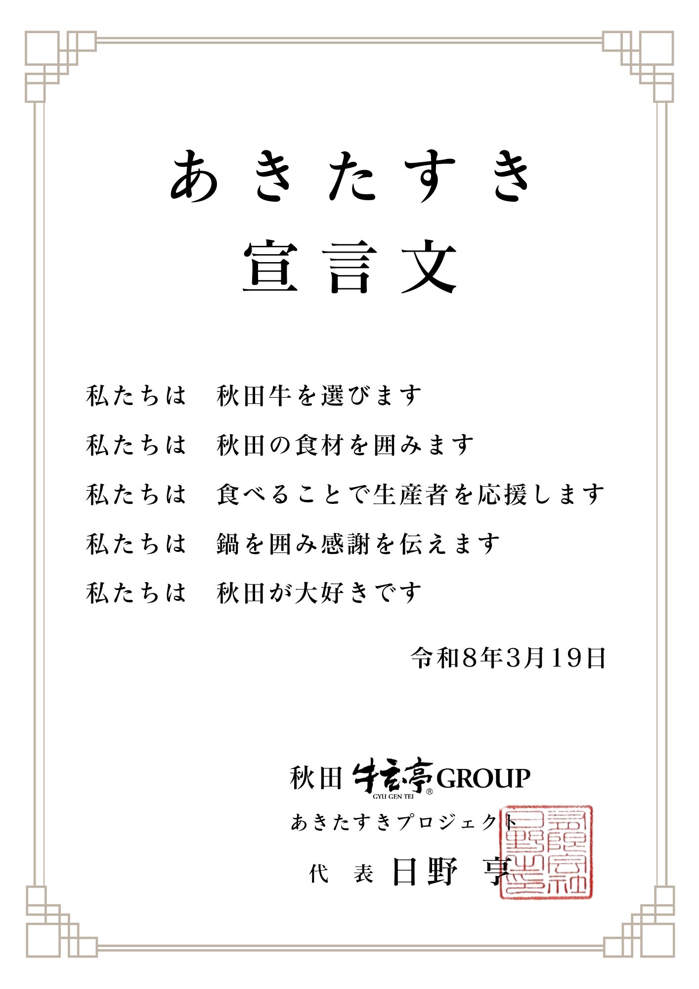 そして、秋田牛と県産食材を囲みながら、家族や仲間へ【ありがとう】を贈り合う食文化です。