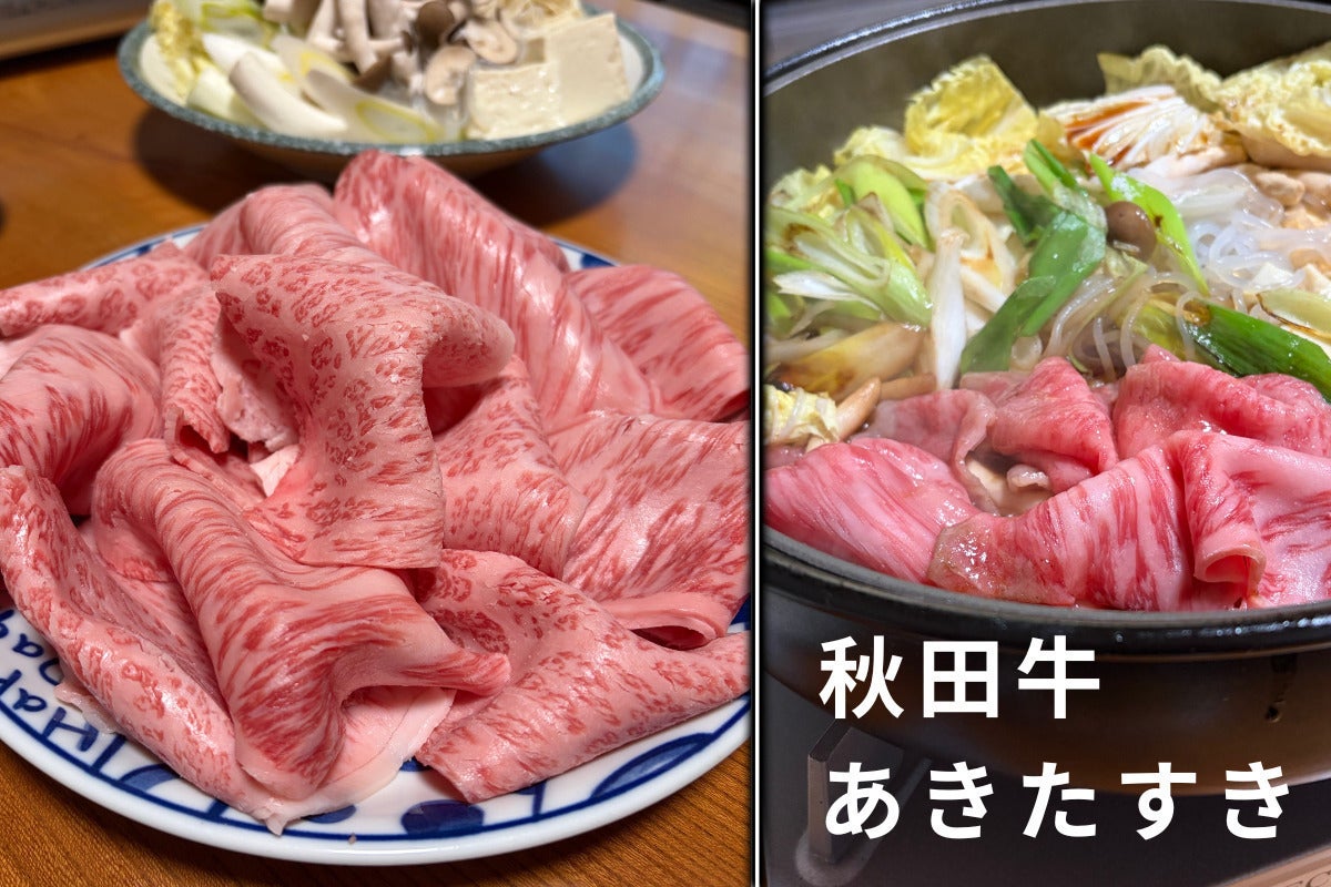 「あきたすき」は「煮る」すき焼き料理ではなく、関西風の『焼く』すき焼き料理です。ご家庭でシンプルに秋田牛を最もおいしく食べられる料理です。(実は和牛は煮るより焼いた方が格段においしい)